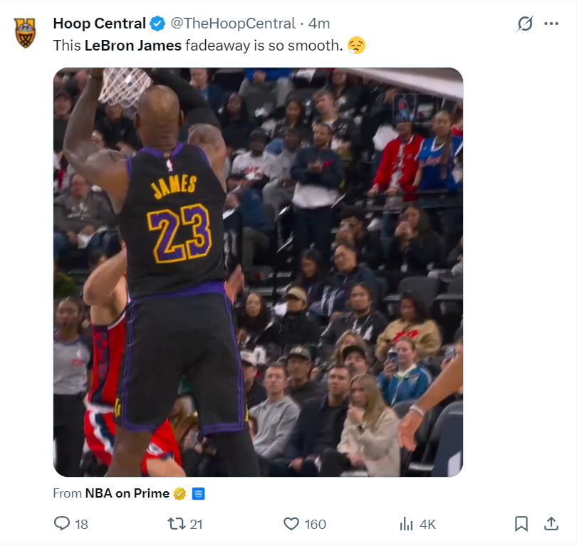 末节詹姆斯5中4拿到9分3篮板3助攻仅1失误,全场比赛詹姆斯36分钟,19中9,三分4中1,拿到23分6助攻5篮板2抢断4失误,命中率47.4%。他在整个下半场拿到14分,湖人队在末节的两波小高潮都要归功于勒布朗,他才是湖人攻防核心。